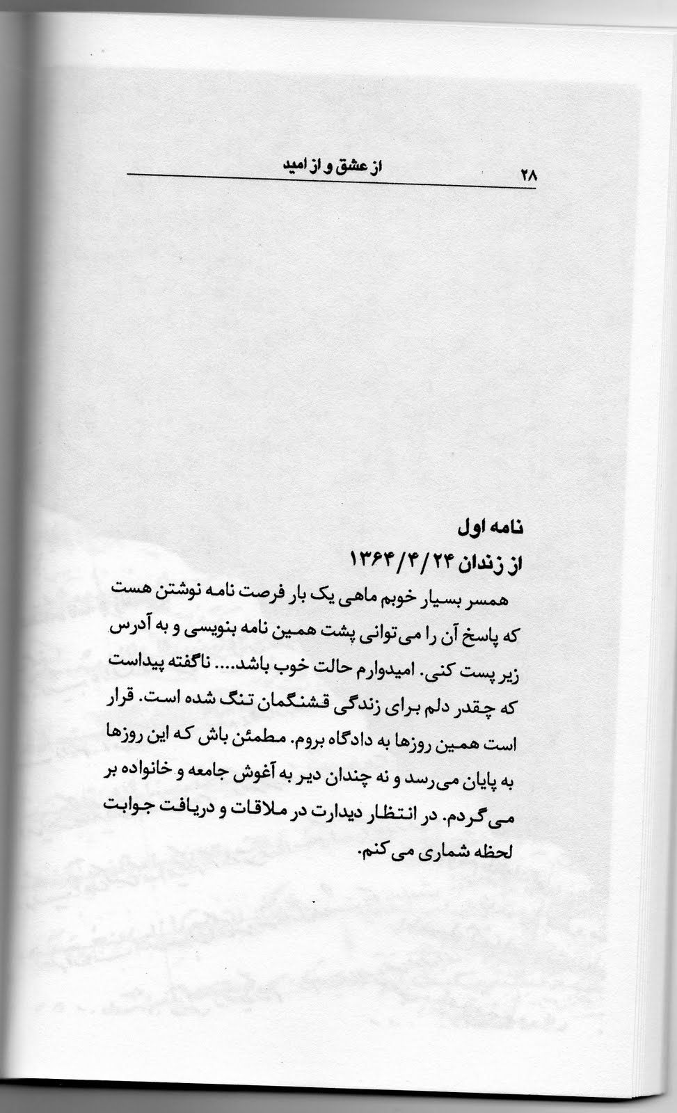 در بيست و پنجمين سالگرد کشتار۶۷، کتاب » نامه هايی به شکنجه گرم» به زبان های فارسی و لهستانی منتشر شد. البته نسخه فارسی کمی زودتر به بازار آمده بود و بعد از تصحيح اغلاط تايپی و يکی دونکته که دوستانی مانند آقای يوسفی اشکوری تذکر داده بودند، مجددا انتشار يافت.